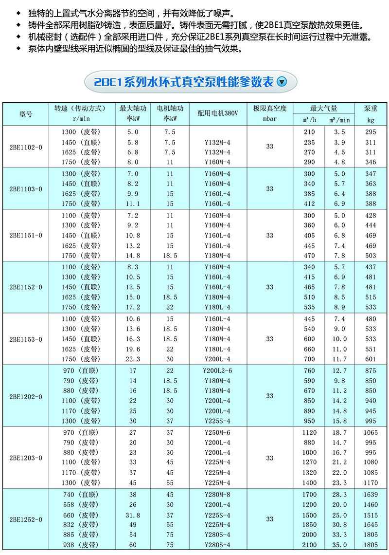 ◆葉輪材質全部采用球墨鑄鐵鑄造或鋼板焊接 ,充分保證了2BE1真空泵葉輪在各種惡劣工況下的穩定性,且